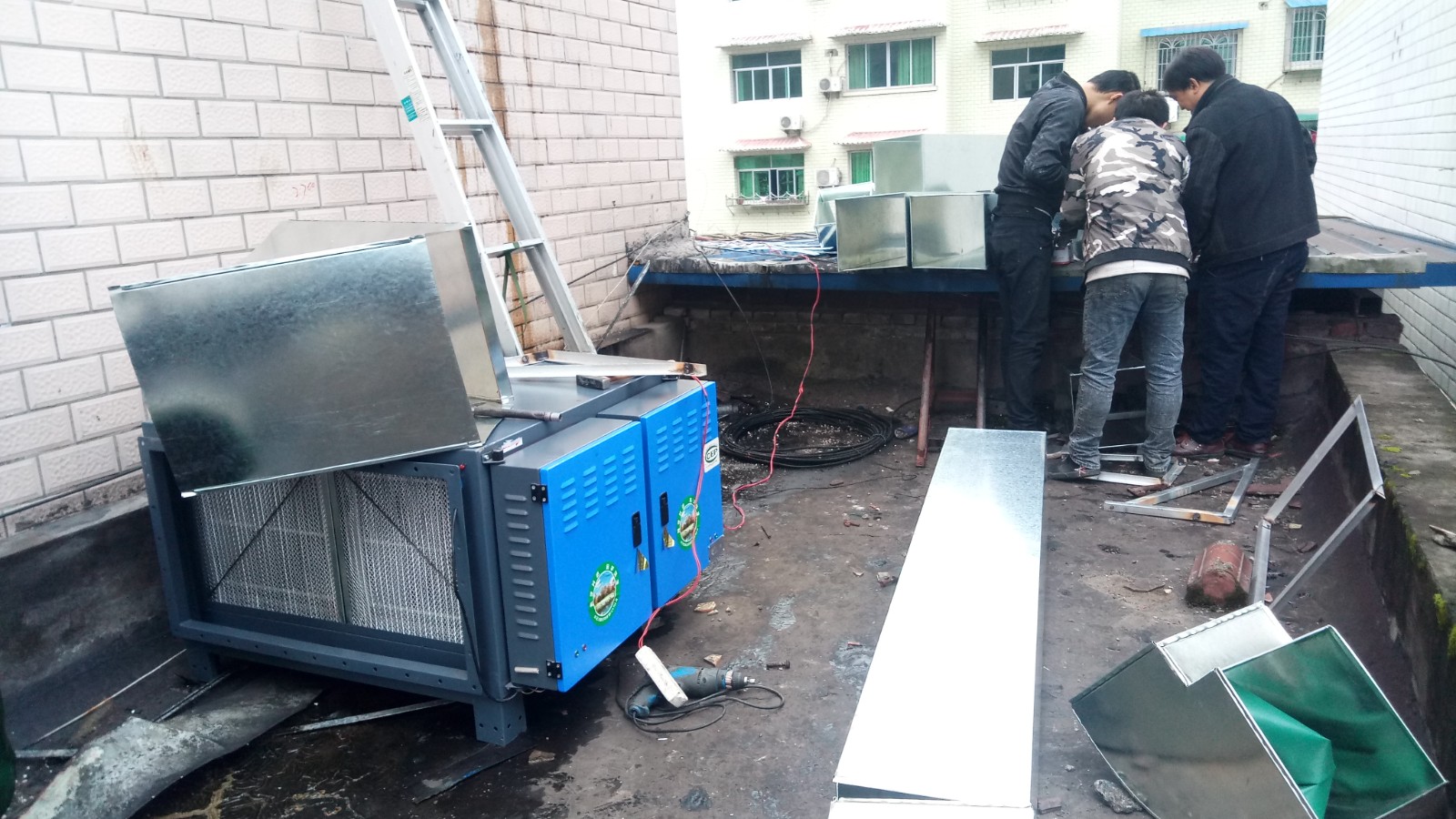 治理效果:出口無(wú)煙,檢測(cè)達(dá)到重慶市油煙排放標(biāo)準(zhǔn)。
