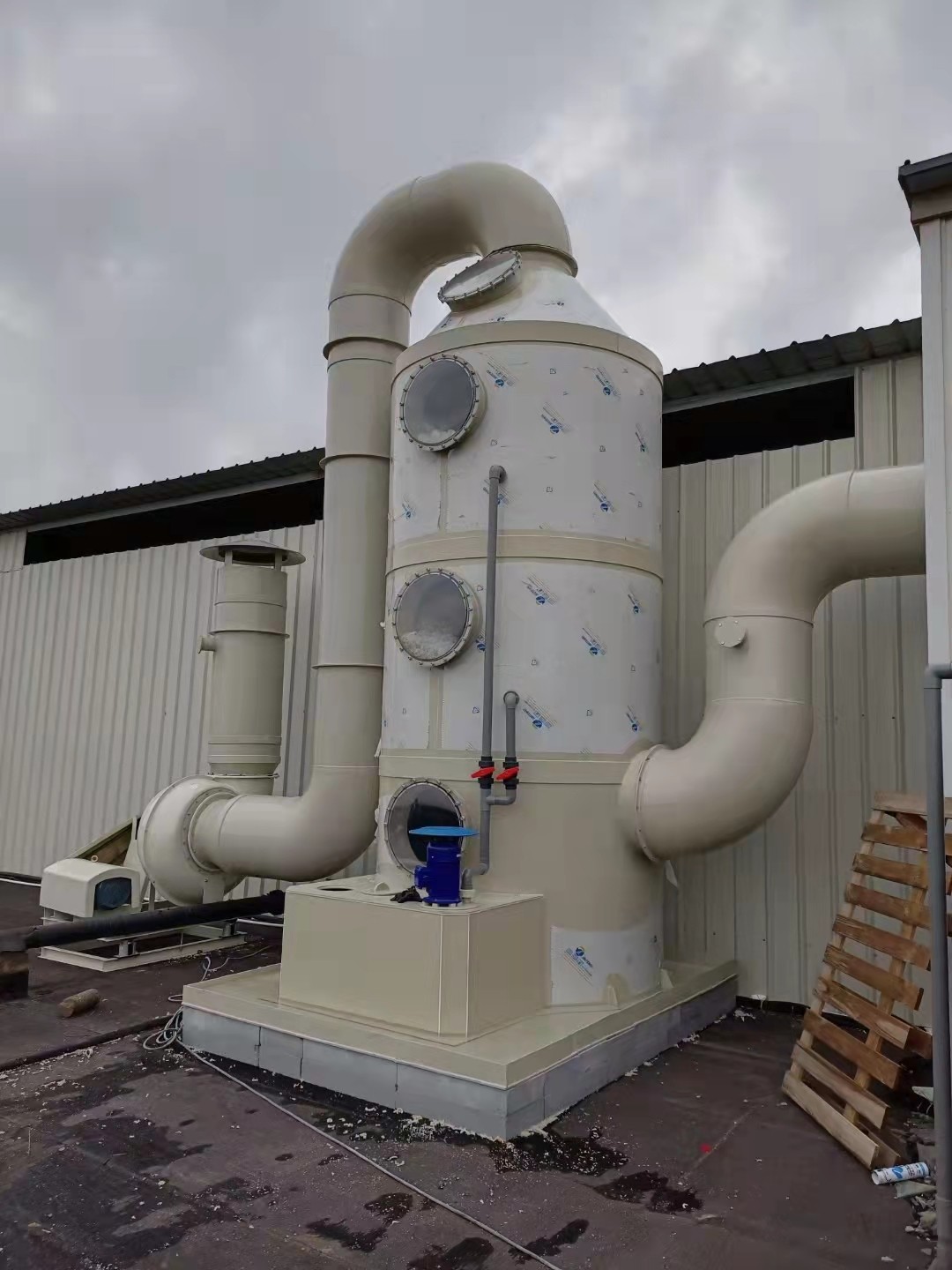 工作原理:涉及廢氣與噴淋液體的接觸和反應(yīng)。廢氣首先被引入噴淋塔的底部,然后通過塔內(nèi)設(shè)置的填料層。在這個(gè)過程中,廢氣與填料充分接觸,填料表面的液膜增大了氣液接觸面積,提高了吸收效率。塔頂設(shè)置的噴淋裝置會(huì)向下噴淋液體,這些液體通常是水或含有化學(xué)藥劑的溶液。當(dāng)噴淋液體與廢氣接觸時(shí),廢氣中的有害物質(zhì)會(huì)被液體吸收或發(fā)生化學(xué)反應(yīng),從而達(dá)到凈化廢氣的目的。經(jīng)過噴淋塔處理后的廢氣,其有害物質(zhì)濃度會(huì)大幅降低,達(dá)到國家排放標(biāo)準(zhǔn),再排放到大氣中。