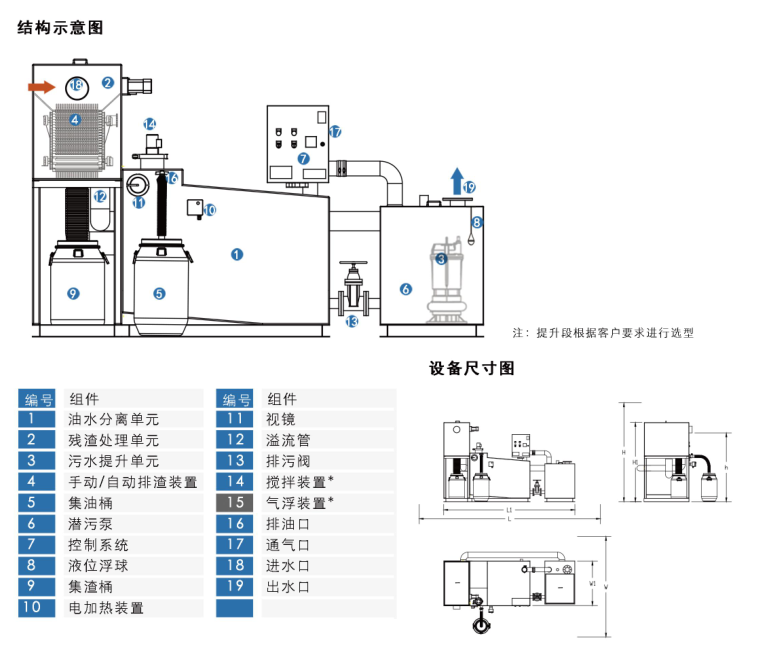 坡形箱體設(shè)計,方便對沉降的污泥收集和排放;·重力感應(yīng)排油、自動排油*;
